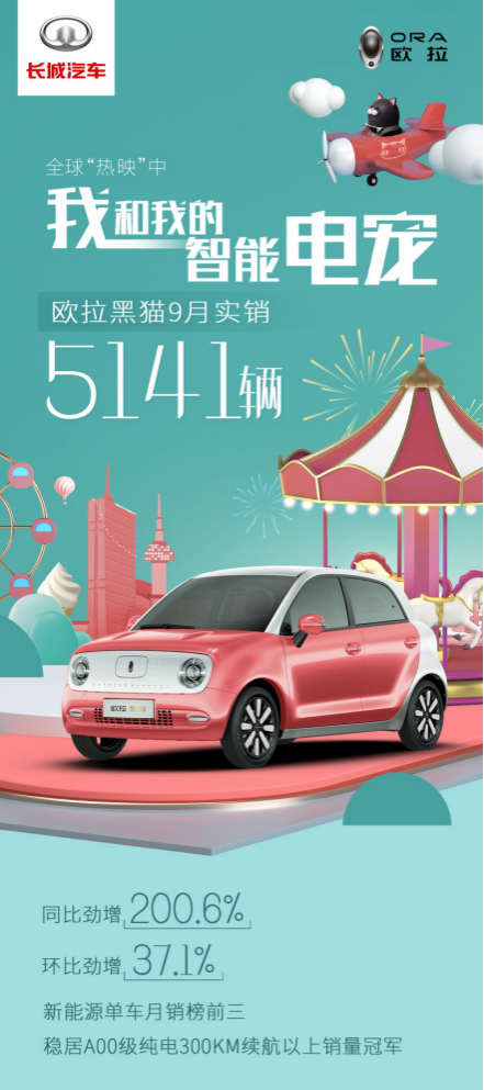 在“金九月”的加持下,新能源车市涨幅明显,欧拉黑猫强势霸榜新能源车型销量Top3,创行业销量新高。