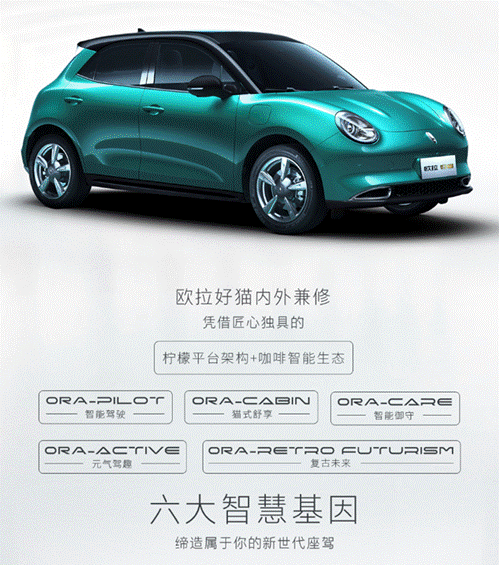 漂亮的“皮囊”和有趣的“灵魂”不可兼得?欧拉好猫不让用户做选择题,除了颜值在线,它也是一台善解人意、高智商的新世代座驾。除了ORA Retro futurism以外,欧拉好猫还拥有匠心独具的ORA Cabin、ORA Pilot、ORA Care、ORA Active等核心优势,以及长城汽车柠檬平台+咖啡智能生态下可成长纯电架构的全面赋能。内外兼修的欧拉好猫,全方位阐释了一台“新世代智美潮跑”的魅力几何。